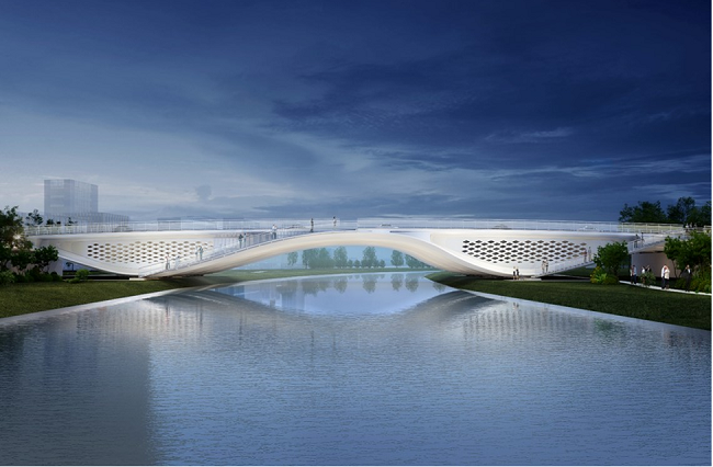 濟(jì)南新舊動(dòng)能轉(zhuǎn)換先行區(qū)橫二路大寺河橋梁段由世界著名橋梁設(shè)計(jì)師Marc MIMRAM先生主設(shè)計(jì),橋梁工程結(jié)構(gòu)為三跨梁拱組合鋼結(jié)構(gòu),全長(zhǎng)418米,工程造價(jià)1.4億元,橋梁段長(zhǎng)150.16米,采用鋼結(jié)構(gòu)梁拱組合體系一跨跨越大寺河,鋼結(jié)構(gòu)總鋼材用量約4197噸。項(xiàng)目融合泉城文化與太極元素,以“泉與太極”為設(shè)計(jì)理念,兼具功能性與藝術(shù)性。作為先行區(qū)核心景觀地標(biāo),橋梁的建成拓展了城市發(fā)展空間,推動(dòng)濟(jì)南從“大明湖時(shí)代”邁向“黃河時(shí)代”,為起步區(qū)高質(zhì)量發(fā)展注入強(qiáng)勁動(dòng)能。